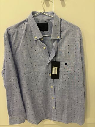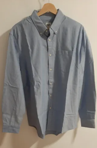 Camisa azul XL sin estrenar. En perfecto estado, sin estrenar y con etiqueta. Lo vendo porque se me ha pasado el tiempo de devolverla a la tienda. - Diseño de manga larga. - Cuello clásico. - Cierre de botones.