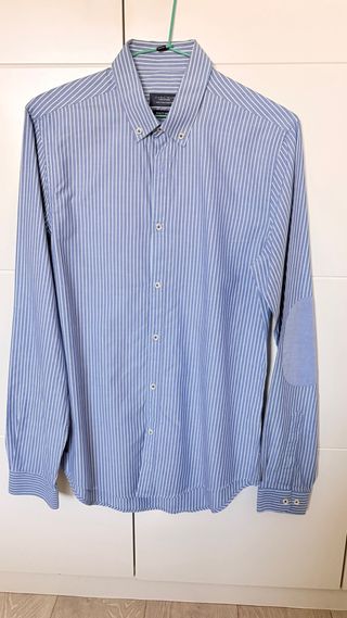 Camisa hombre de rayas azules y blancas Zara