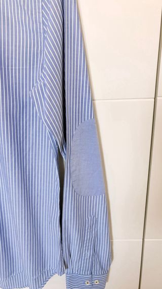 Camisa hombre en perfecto estado, casi sin uso. De rayas blancas y azules. Con coderas en mangas. Talla S. Cuello con botones.