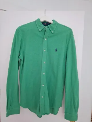 Camisa original Ralph Lauren en color verde menta, con logo bordado en azul y cuello abotonado. Tejido tipo Polo: suave, ligero y muy cómodo, perfecta tanto para looks casuales como más arreglados. Prenda muy cuidada, sin manchas ni desperfectos. Un clásico atemporal que siempre funciona.