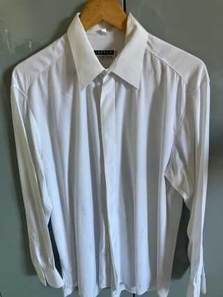 talla 41 tallaje de hombre segun cuello sera una 50/52 con botones ocultos medidas sisa 60, hombros 49, largo 75, manga 62 poco uso