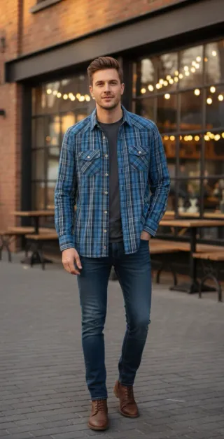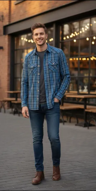 Camisa de cuadros con un estilo urbano y moderno. - Diseño de cuadros en tonos azules y negros. - Cuello camisero. - Cierre de botones. - Dos bolsillos en el pecho. No hago cambios ni Devoluciones