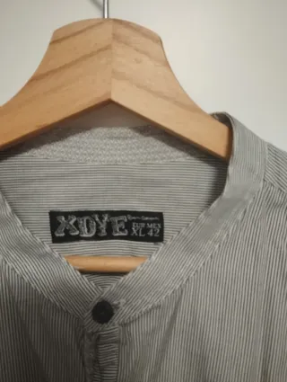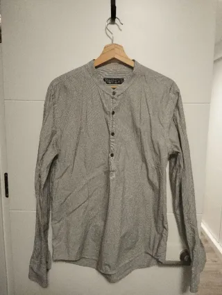 Camisa de manga larga con cuello mao y cierre de botones. Es talla s de hombre o m de mujer. De mucha calidad, me costó 50€, era un regalo para mi chico pero le está muy justa, ha sacado barriga jeje - Confeccionada en 100% lino. - Diseño ligero y transpirable.