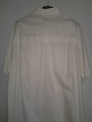 Camisa de manga larga con cuello camisero. En la espalda tiene una mancha, pero se quita seguro con un simple lavado. - Diseño de corte recto, trasera, algo más larga que la delantera - Bolsillo en el pecho. - Cierre de botones. Ancho de hombros, 51 cm, ancho de sisa, 61 cm, largo parte trasera, 81 cm y largo parte delantera 74 cm