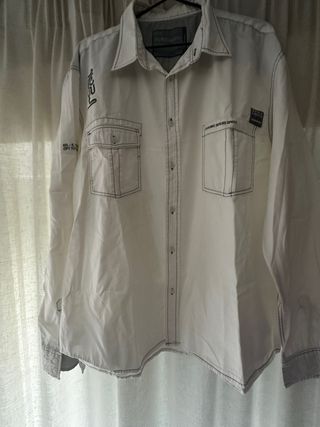 Camisa de manga larga. Marca Sillón. Talla L ajustada. Desgaste en el interior del cuello por el uso (última fotografía).