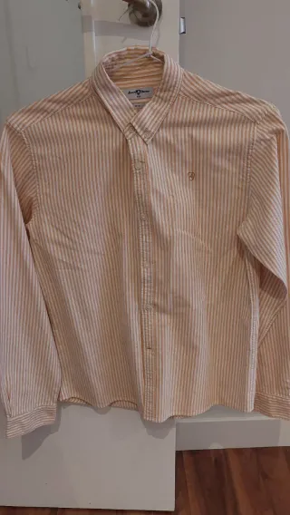 Camisa de manga larga para hombre en color coral. Talla M de Cortefiel, añado fotos de las medidas. Poco uso, en perfecto estado.