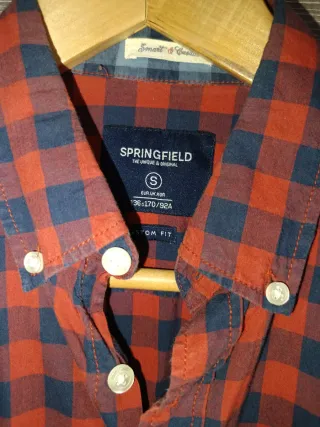 Camisa de cuadros grandes de Springfield. Camisa de Springfield talla S - Diseño de cuadros en tonos azul y naranja. - Manga larga. - Cuello camisero. Sin usar, en perfectas condiciones 😊