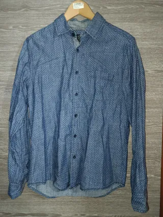 Camisa de manga larga con un discreto estampado de topos en tonos azules. - Cuello abotonado. - Cierre de botones. - Puños con botón. Usada pero en perfectas condiciones, no dudes en preguntar ☺️