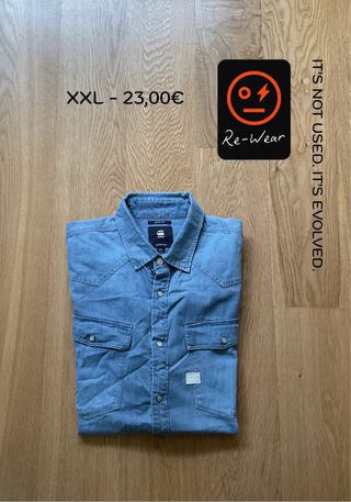 Camisa de estilo vaquero de la marca El Ganso. Totalmente nueva, fue un regalo para en mi hijo y la ha usado una sola vez, ahora ya no le vale. - Color azul. - Fabricada en Portugal. - Detalle de logo bordado en el pecho. camiseta, camisa, jersey, traje