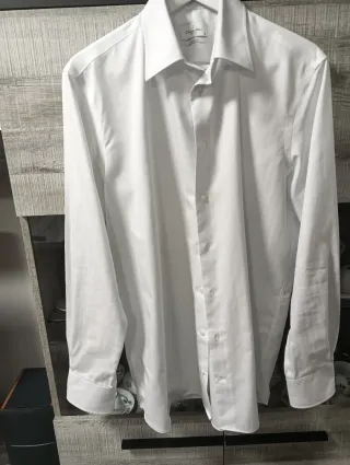 Elegante camisa de vestir de la marca Ermenegildo Zegna. - Color blanco clásico. - Corte moderno y favorecedor. - Cuello de camisa tradicional. - Cierre de botones. - Puños abotonados.