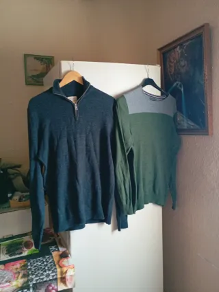 Conjunto de dos blusas para hombre. - Blusa azul con cremallera. - Blusa verde con detalle gris.