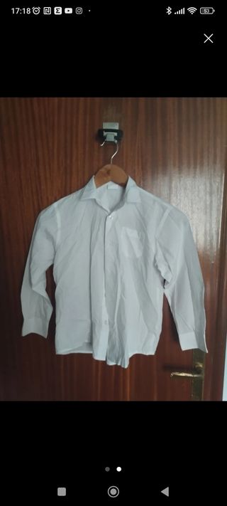 Camisa blanca en perfecto estado. - Manga larga. - Cuello clásico. - Bolsillo en el pecho. - Ideal para ocasiones especiales o uso diario.