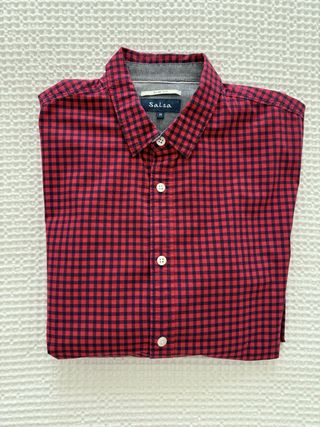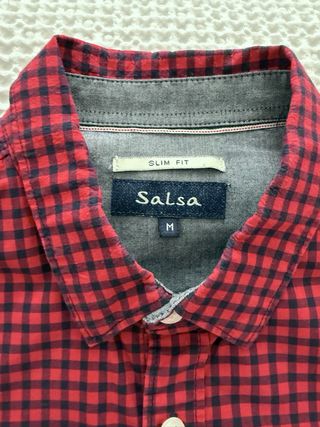 Camisa de manga larga para hombre de cuadros rojos (apagado) y azules. Marca Salsa, talla M y corte Slim fit (lleva pinzas traseras) 100% algodón. Se ha usado solo un par de veces, incluso tiene la etiqueta con los botones. Precio en tienda de 60 euros. MEDIDAS: -Ancho sisa: 52 cm -Largo total: 73 cm