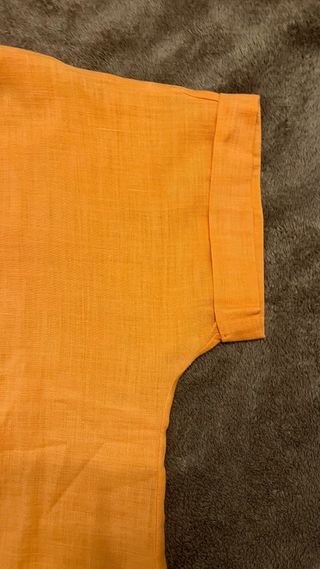 Camisa de lino con manga corta en color naranja. Presenta un diseño con detalles de costuras verticales. - Cuello mao. - Cierre de botones. - Tejido de lino.