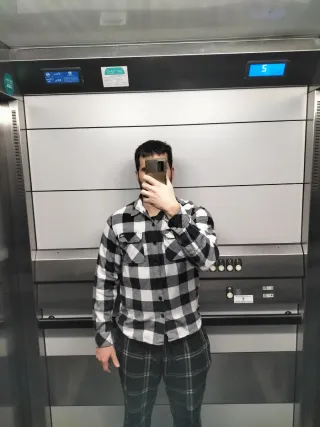 Camisa de manga larga con estampado de cuadros. - Cuello camisero. - Dos bolsillos en el pecho con botón. - Cierre de botones en la parte delantera.