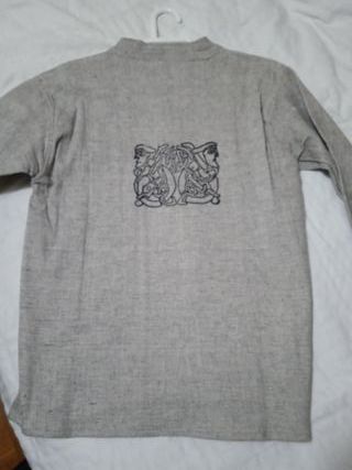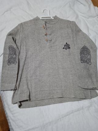Camisa de manga larga con un diseño único y detalles celtas y botones de madera.