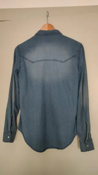 Camisa vaquera de manga larga con un lavado claro. Presenta dos bolsillos en el pecho y cierre de botones. - Diseño clásico. - Tejido de algodón. - Corte recto. Precio negociable!!!