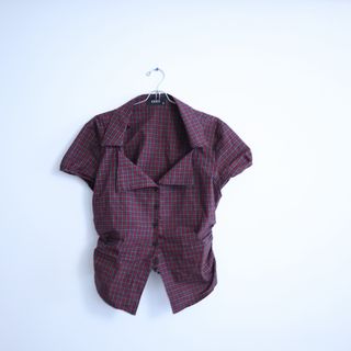 Camisa de cuadros con cuello camisero y manga corta. - Cierre de botones. - Diseño con fruncido lateral.