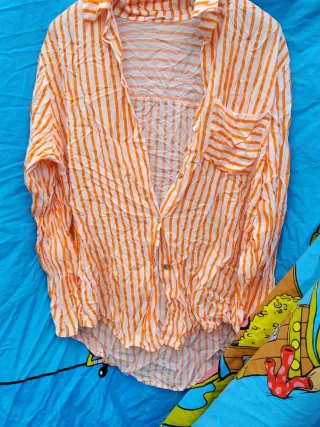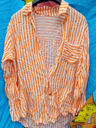 Camisa de mujer a rayas naranjas y blancas