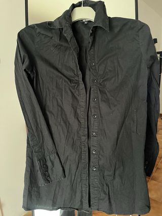 Camisa color negro, básica. Corte mujer. Puños largos para darles la vuelta. En muy buen estado (necesita plancha) largo 55 ancho 44