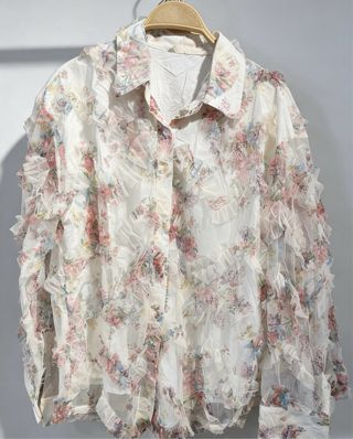 Camisa de mujer con un bonito estampado floral y detalles de volantes. Talla unica