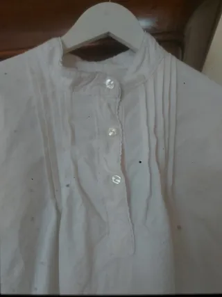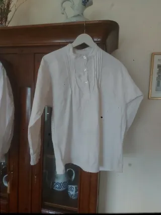 Camisa tradicional para baile gallego. - Cuello alto con botones. - Detalle de puntillas y plisados.