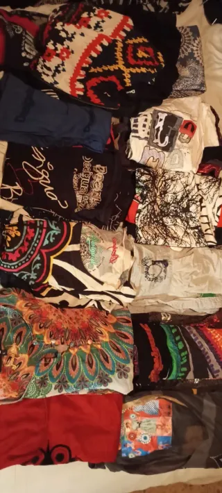 Super lote de ropa para mujeres de la talla S. Todo en perfecto estado. 14 camisetas 1 camisa 5 jersey fino 1 jersey grueso 4 pantalones cortos 2 faldas (una larga y otra corta) 13 pantalones (5 de ellos vaqueros) 4 monos 17 vestidos (algunos para ocasiones especiales) iTodo por 30€!!