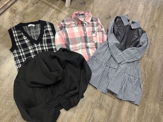 7 piezas de prendas de vestir para mujer. - Chaleco de punto con estampado de cuadros (2XS) - Camisa de franela a cuadros (XS) - Sudadera negra caliente (S) - Vestido de cuadros con detalle de cuero (S) - Vestido rojo coral con bolsillo (S) - Sudadera rosa caliente ancha (S) - Vestido de rayas/cuadros (S) TODO POR 10€, se hacen envios también.