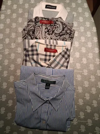 Lote de cuatro camisas de vestir y casuales. - Camisa de cuadros Burberry. Talla 44 - Camisa con estampado paisley Burberry talla 44 - Camisa de rayas Ralph Lauren talla M - Camisa de rayas Antonio Pernas talla 44 Escucho ofertas, no dudes en decírmelo