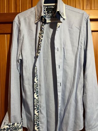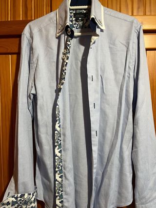 Camisa de vestir Zara Man con un diseño moderno y detalles únicos. - Cuello doble con contraste. - Puños y solapa interior con estampado floral. - Botones a contraste.