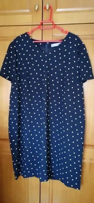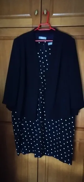 Conjunto de vestido y americana con un diseño de lunares. - Vestido con estampado de lunares blancos sobre fondo oscuro. Talla 4XL - Americana a juego, de corte clásico. Talla 60 - Regalo camisa talla 2XL