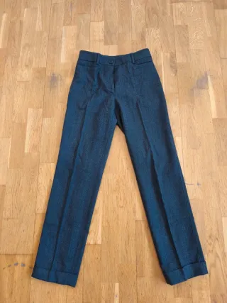 Pantalón de vestir para mujer de la marca Cigarette, modelo FIT W13 Stretch. Diseño elegante y atemporal en tono gris oscuro con textura fina, ideal para oficina, trabajo o looks formales. Corte recto con pinzas delanteras, bolsillos traseros con botón y bajo vuelto. Tejido con elasticidad que aporta comodidad sin perder estructura. Prenda cuidada y en muy buen estado, sin roturas ni manchas. Perfecto para combinar con blazer, camisa o jersey fino. Marca: Cigarette Modelo: FIT W13 Stretch Tipo: Pantalón de vestir / formal Color: Gris oscuro Corte: Recto con pinzas Tejido: Stretch (elástico) Cierre: Botón y cremallera Bolsillos tras