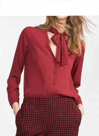 Elegante camisa de vestir con un diseño de lunares. Cuello con lazada. #blusa #top #camisa #topos #talla36 #zara #comonuevo