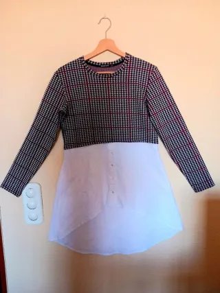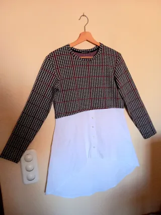 Bonito vestido-camisa de manga larga. Sin estrenar. Nuevo. Talla M/ Talla 38. Diseño de "dos piezas"; con estampado de cuadros en la parte superior y de camisa blanca con botones en la parte inferior. Cuello redondo. #vestidotalla38 #vestidostradivarius #stradivarius #vestido38 #vestidomujer38 #vestidotallam #vestidocamisa #vestidoinformal38 #vestidoinformaltallam