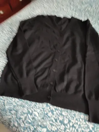 Cárdigan de vestir elegante y versátil. - Color negro. - Diseño clásico con botones. - Manga larga.