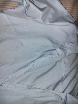 como nuevo,azul claro por la luz la 1 parece verdoso ,no es color azul clarito típico d camisa muy bonito, intacto cmo Nuevo puesto en 2 ocasiones,de la tienda mulaya.rakka única,pero valdría pra s y m