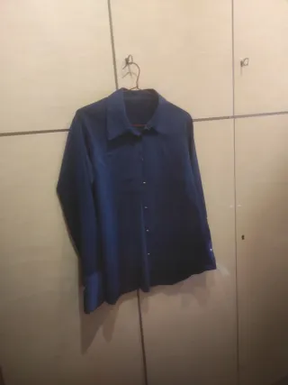 Camisa de vestir para mujer con un diseño elegante y detalles de puntilla. - Cuello en V con botones. - Mangas largas. - Bajo redondeado. Te invito a ver mas ropa que tengo publicada, se pueden armar lotes mejorando el precio y tambien el envío. Gracias por elegir sostenible.