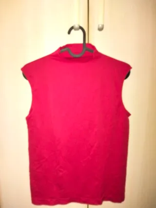 Prenda de vestir de color rojo. - Diseño ajustado. - Cuello alto.