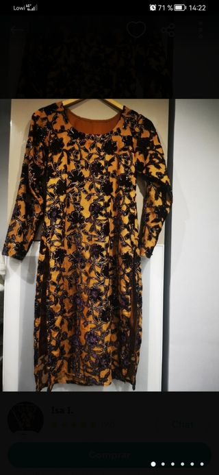 lote de dos prendas 1👗 vestido escote de pico con estampado mangas cortas de volantes color azul y blanco largo con raja delantera y cremallera por detrás asta la cintura y tiene mucha caída muy adaptable taya (M 38) 🌸🌼y blusa con sus bolsillos delanteros tela muy fresquita talla camisa L una 40🌼