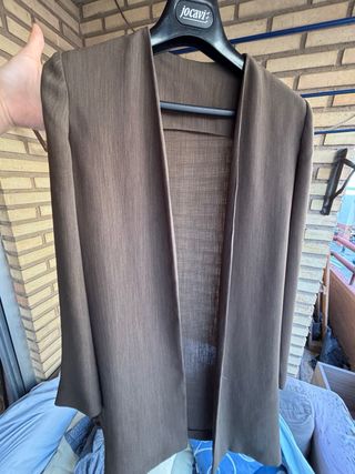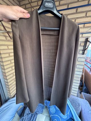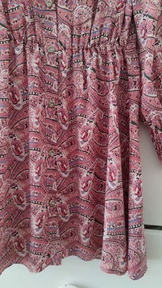 Usado dos o tres veces como mucho, bien conservado. Medidas: 43 cm de hombros 95 cm de pecho 55 cm largo de manga 94 cm de largo La tela es ligera, parecida a la seda, sirve como camisa de playa o para llevar con leggings si es tu estilo. Tiene aberturas a los laterales a la altura de la cadera por lo que no es un vestido como tal. Como mucho tiene algún hilo un poco despasado ya que la tela es frágil pero nada más.