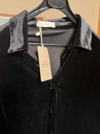Elegante camisa negra de manga larga de la marca Lara Laffaire. Confeccionada en un suave tejido de terciopelo, ideal para ocasiones especiales o para añadir un toque sofisticado a tu atuendo. - Cuello camisero. - Cierre de botones. - Tacto aterciopelado.