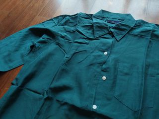 Camisa de manga larga de color verde. Tejido como satinado - Cuello camisero. - Cierre de botones. - Puños abotonados.