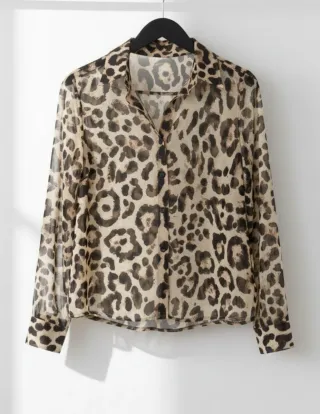 Camisa elegante con un llamativo estampado de leopardo. - Diseño de manga larga. - Cuello camisero. - Cierre de botones.
