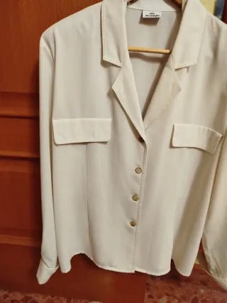 Camisa elegante de manga larga. - Cierre frontal con dos botones dorados. - Ribete plateado en el cuello Entrego en mano en la zona