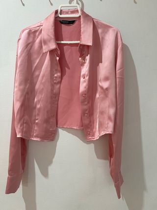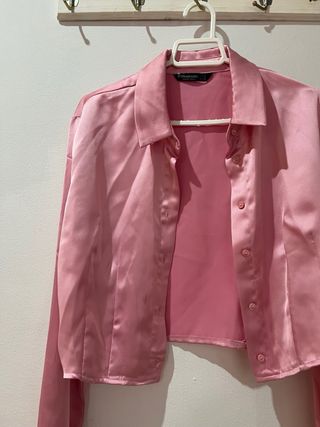 Camisa corta Stradivarius rosa manga larga