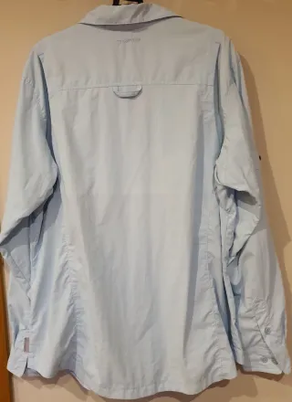 Sobrecamisa Columbia en color azul claro- - Transpirable - Cuello camisero. - Bolsillos en la parte frontal con cremallera - Puños con botón, se pueden recoger a manga corta.