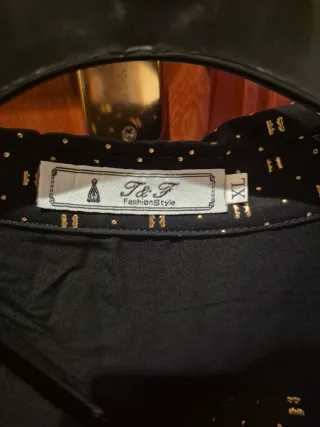 Elegante camisa negra con un sutil estampado dorado que le da un toque especial. Perfecta para cualquier ocasión. - Diseño con cuello y botones. - Manga larga.
