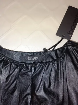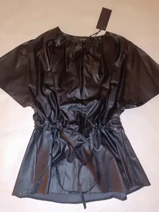 Camisa de piel sintética, talla M. Nunca usado. - Manga corta abullonada. - Detalle de cordón en la cintura. - Cuello redondo.