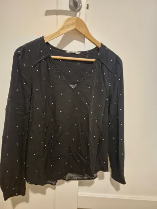 Elegante camisa de manga larga con un clásico estampado de lunares. - Cuello camisero. - Cierre de botones. - Puños abotonados. 100% algodón, se estrecha un poquito Talla dice que es 34 (también va para 32) Corte - slim fit