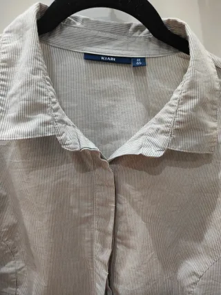 Camisa de Zara con un diseño de rayas verticales sutiles. Presenta un detalle de nudo en la parte delantera y botones. - Manga larga con puños abotonados. - Cuello camisero.